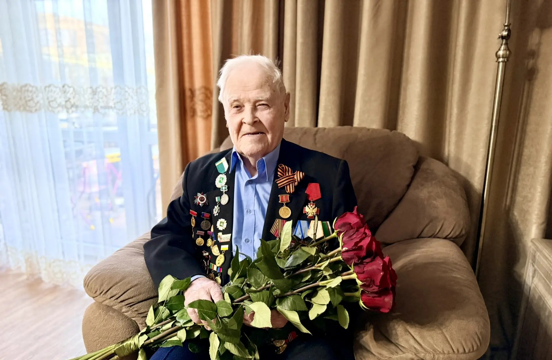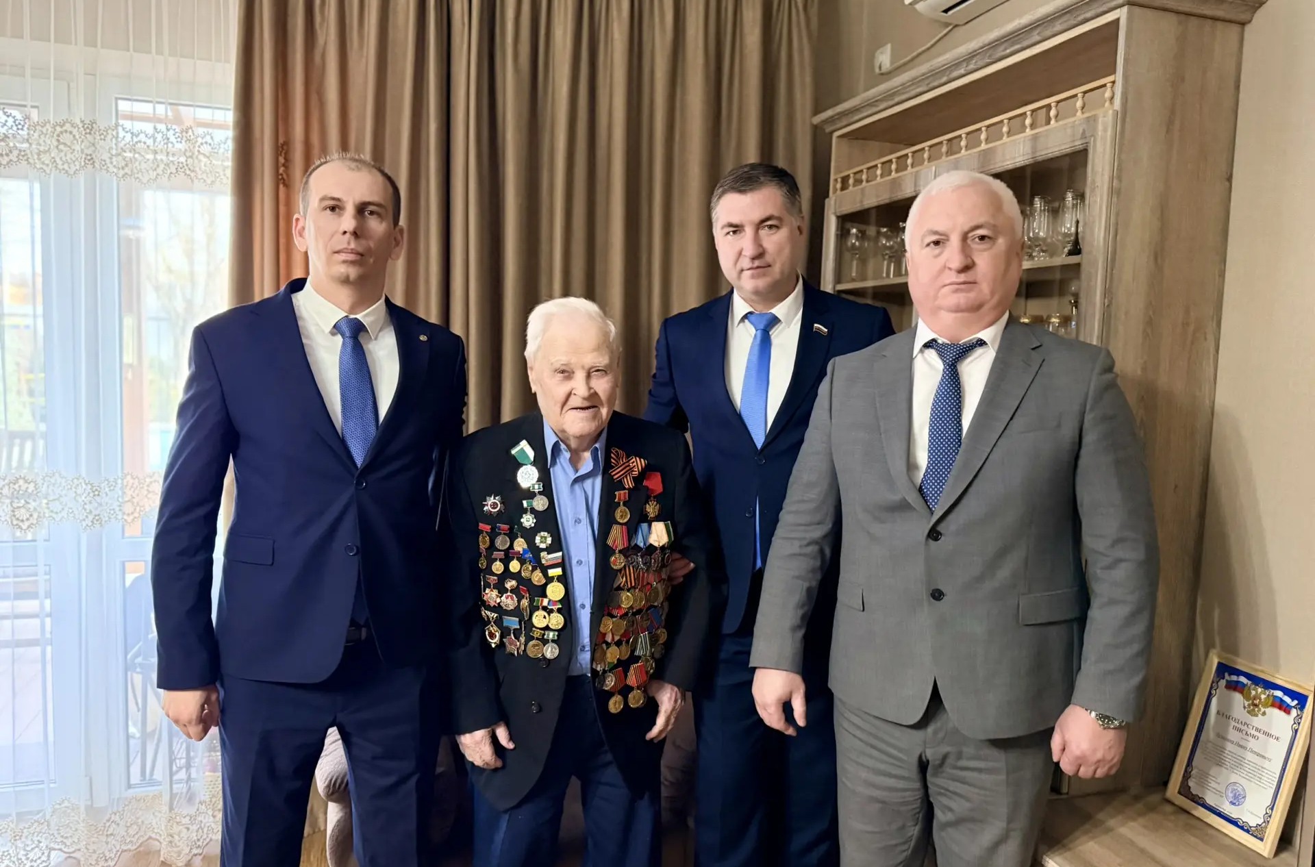Ветерана с подарками и цветами навестили глава Прикубанского округа Евгений Беликов, депутат городской Думы Константин Семернин и директор по развитию