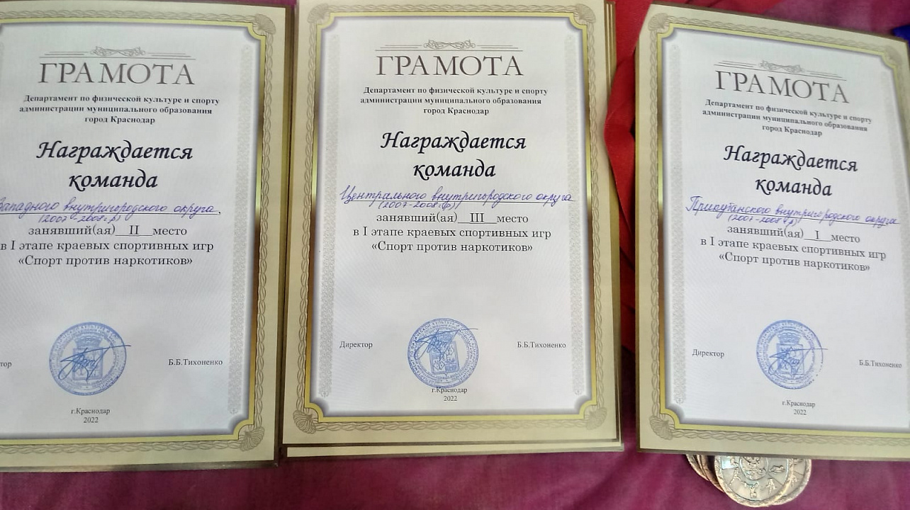 Комиссией по делам несовершеннолетних при администрации Прикубанского внутригородского округа города Краснодара, отделом образования по Прикубанскому внутригородскому округу департамента образования администрации муниципального образования город Краснодар организовано участие учащихся общеобразовательных организаций в 1 этапе спортивных игр «Спорт против наркотиков».