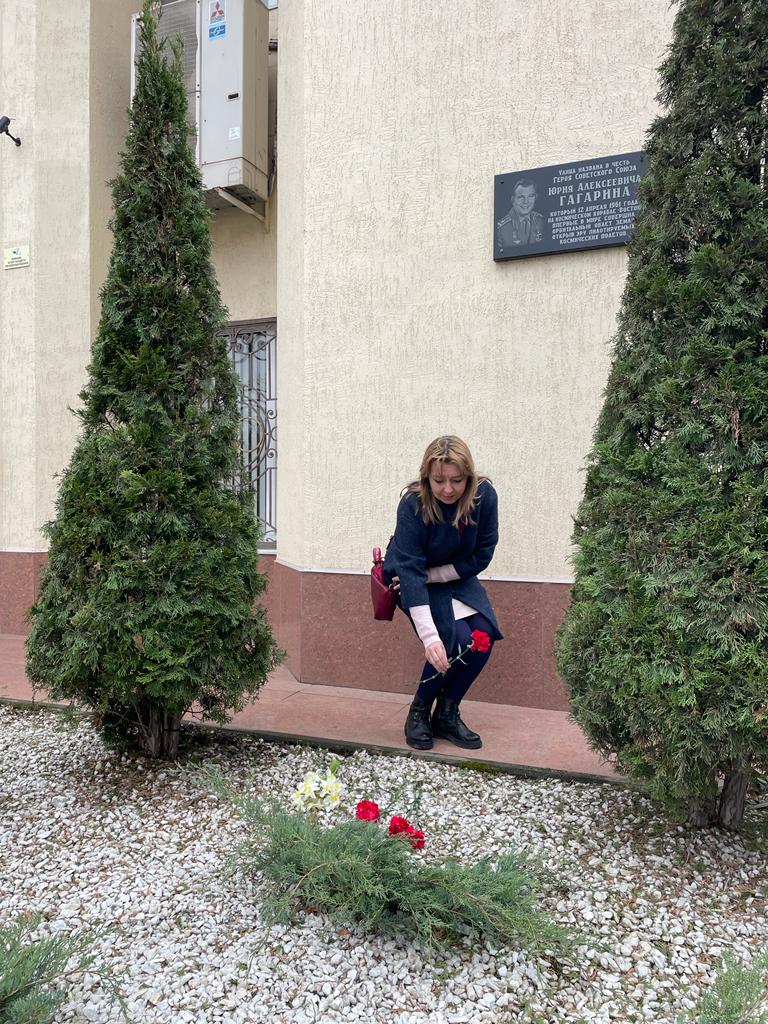 В Фестивальном микрорайоне возложили цветы к доске памяти Юрия Гагарина