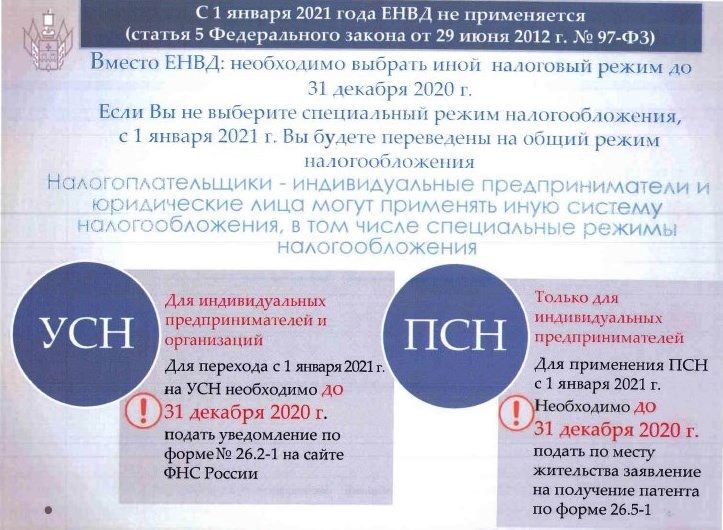 Кроме того, до принятия соответствующих законов субъектов РФ предусмотрен переходный период, в рамках которого налогоплательщики смогут до 31.03.2021 применять ПСН по виду деятельности розничная торговля, общепит, стоянка автомобилей и автомастерские на расчетных условиях, максимально приближенных к действующим на ЕНВД в 2020 году. Такие патенты могут получить индивидуальные предприниматели, если они применяли ЕНВД по соответствующему виду предпринимательской деятельности в четвертом квартале 2020 года.