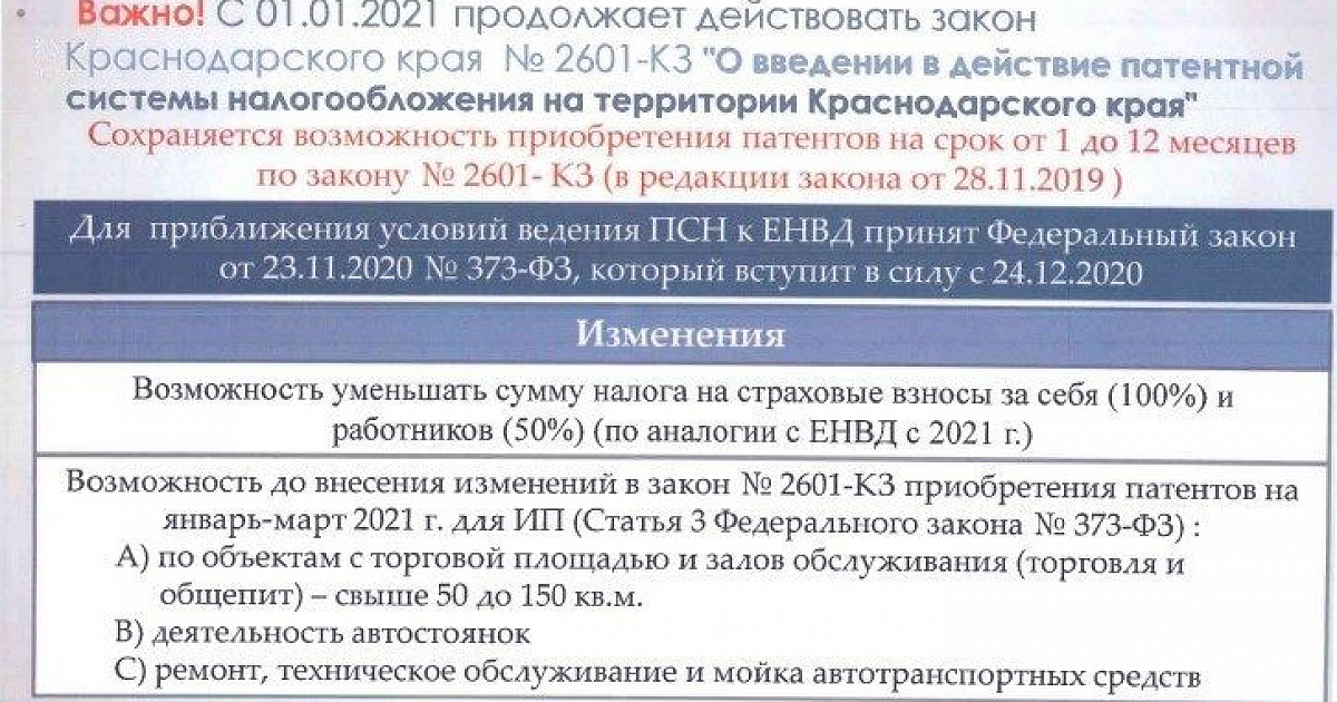 С 1 января 2021 года вступят в силу изменения в патентной системе налогообложения