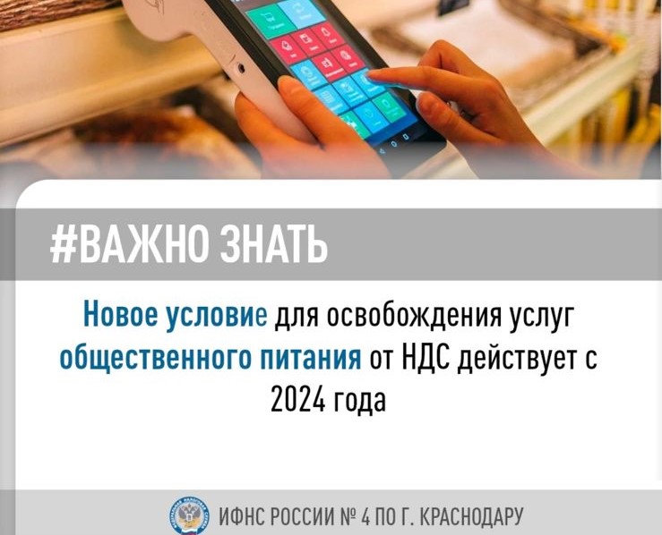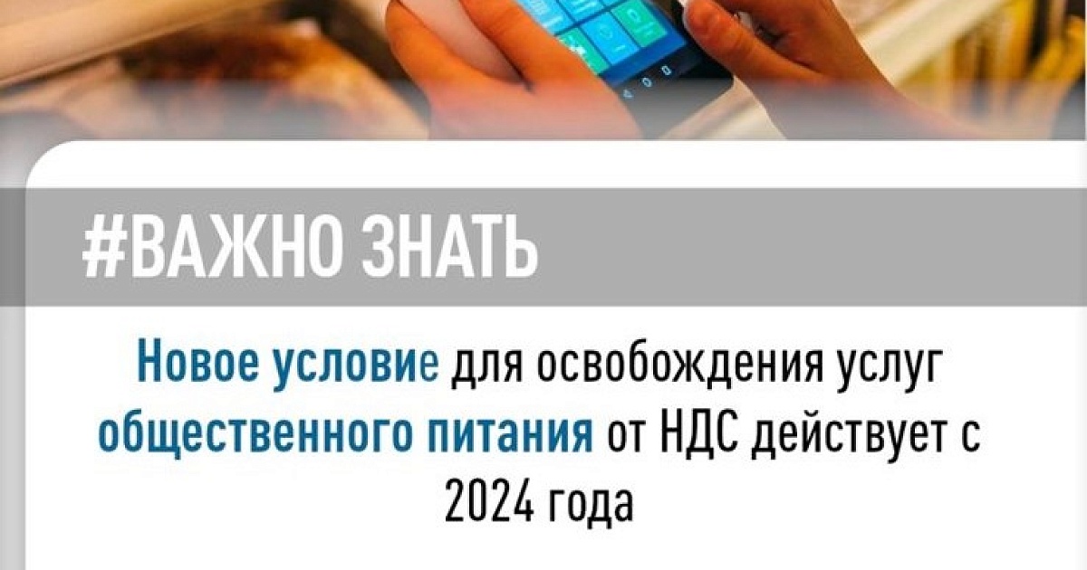 С 1 января 2024 года вступило в силу новое условие, позволяющее использовать освобождение от уплаты НДС при оказании услуг общественного питания