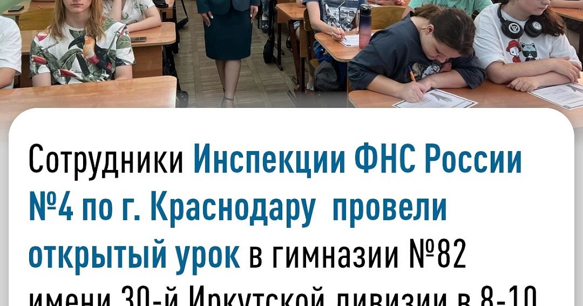 Сотрудники отдела работы с налогоплательщиками Инспекции провели открытый урок в гимназии №82 имени 30-й Иркутской дивизии в 8-10 классах