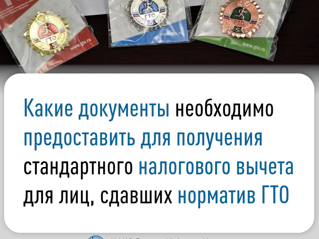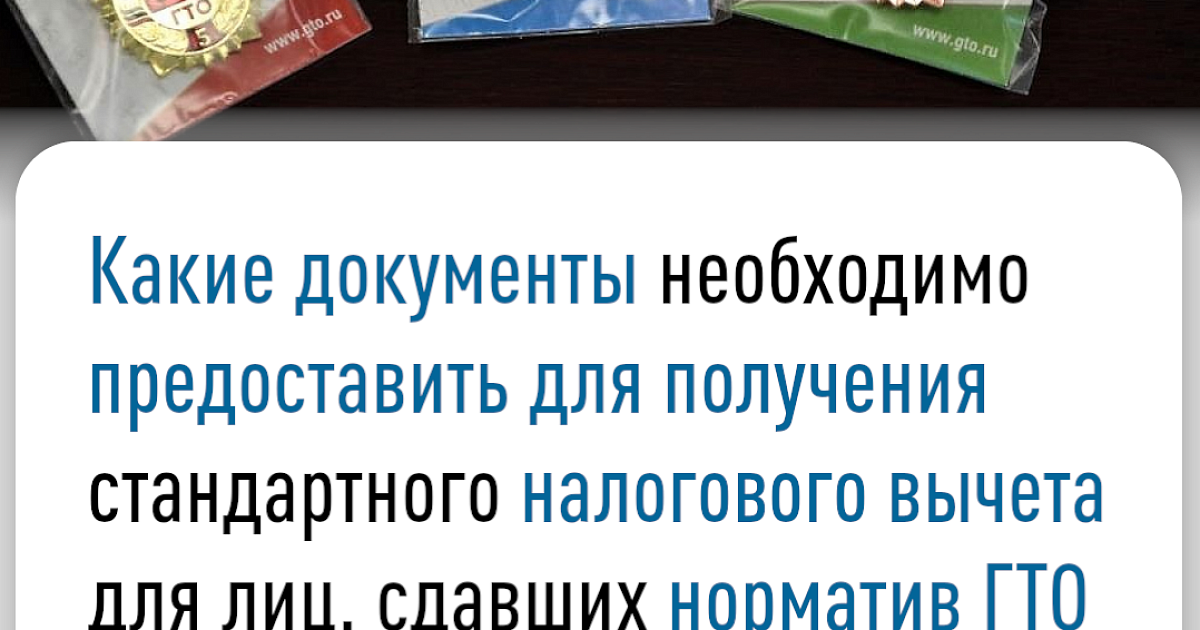 Какие документы необходимо предоставить для получения стандартного налогового вычета для лиц, сдавших норматив ГТО