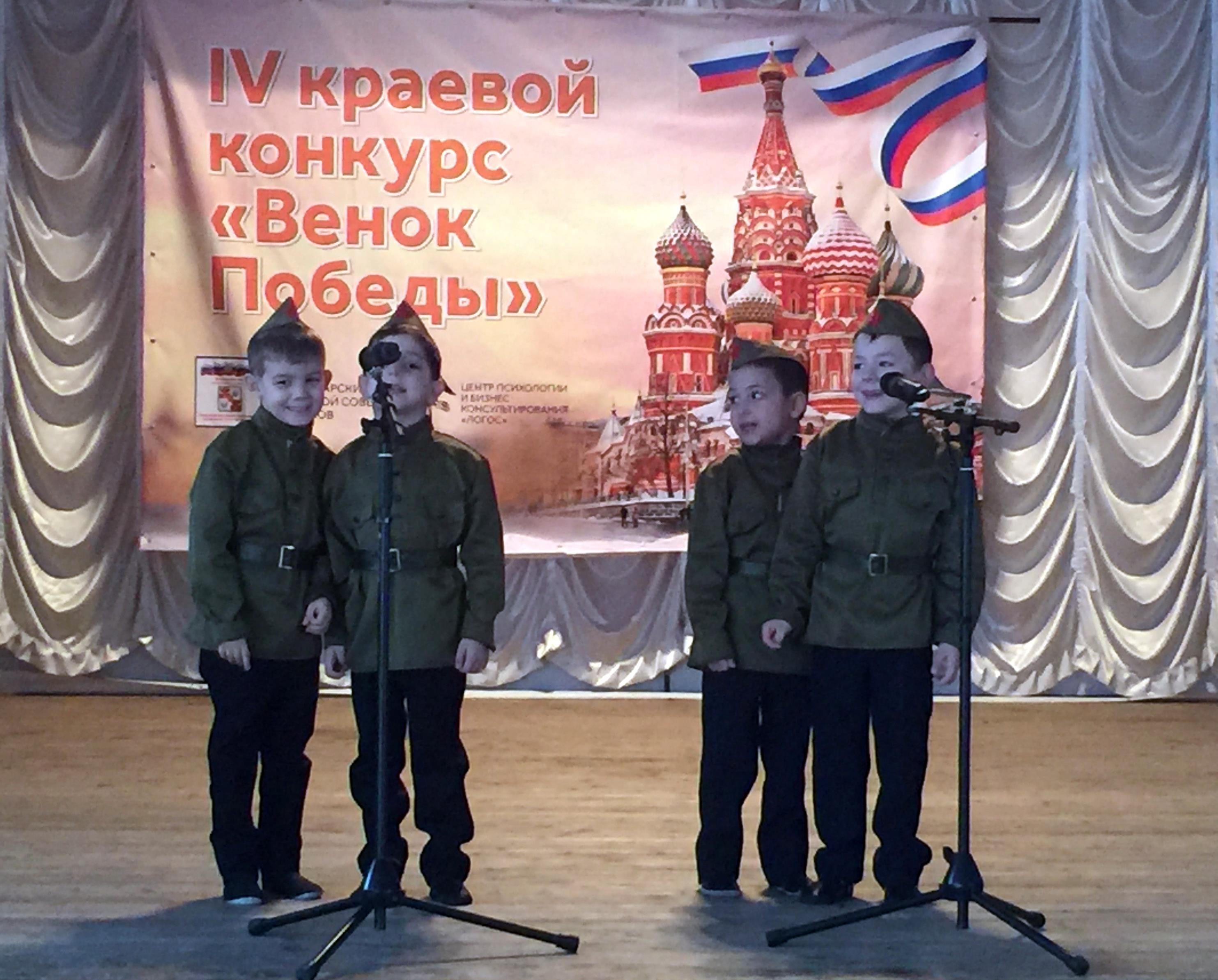 Ребята старшей группы Маркарян Марк и Джавршян Артур, а также подготовительной группы Акопов Даниил и Григоренко Руслан под руково-дством музыкального руководителя Буренкиной Татьяны Анатольевны вы-ступили с песней «Я вернусь победителем».