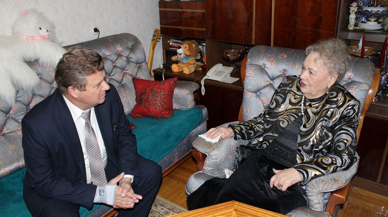 Также с поздравлениями и подарками заместители главы округа побывали сегодня у Почетного гражданина Краснодара, Заслуженного работника культуры РСФСР Марины Михайловой . Она участница трудового фронта в военные годы, а после войны- руководитель управления культуры Крайисполкома. За годы ее работы на Кубани построено более 700 учреждений культуры, в том числе Театр драмы им. М. Горького, цирк, кинотеатр «Аврора», Краевой театр кукол.