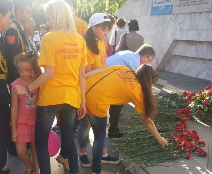 27 сентября 2015В рамках празднования 222-й годовщины со Дня образования города Краснодара молодёжным Советом при главе администрации Западного округа города Краснодара была организована и проведена гражданско-патриотическая акция «Цветы у обелисков», чтобы очередной раз отдать дань памяти тем, кто сражался за мир на родной земле с немецко-фашистским войском.