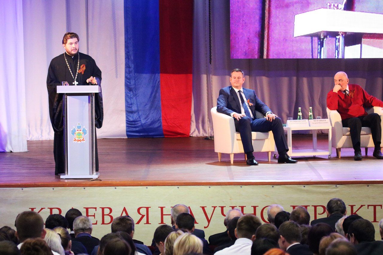 Докладчиками конференции стали: заместитель председателя Законодательного Собрания Краснодарского края Виктор Чернявский, заместитель министра образования, науки и молодёжной политики Краснодарского края Сергей Килин, руководитель отдела по делам молодёжи Екатеринодарской и Кубанской епархии протоиерей Дмитрий Руднев, доцент кафедры истории философии Санкт — Петербургского государственного университета Андрей Муравьёв и военный комиссар Краснодарского края полковник Сергей Пуликовский.