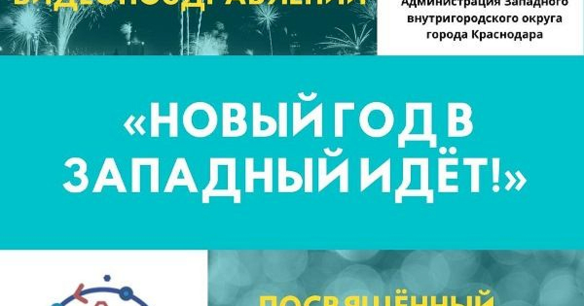 С 1 по 16 декабря администрация Западного внутригородского округа города Краснодара совместно с автономной некоммерческой организации дополнительного профессионального образования «Медиашкола» проводит открытый окружной конкурс видеопоздравлений «Новый год в Западный идёт!», посвящённый празднованию Нового 2021 года.
