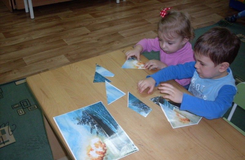 Воспитанники играли в сюжетно-ролевые игры «Солдаты на отдыхе», «Военный врач». Проведена дидактическая игра «Собери картинку», где детям были предложены разрезные картинки с изображением военного корабля. Воспитанники группы почувствовали себя настоящими моряками, военными врачами и солдатами, как в строю, так и на отдыхе в сюжетно-ролевых играх.