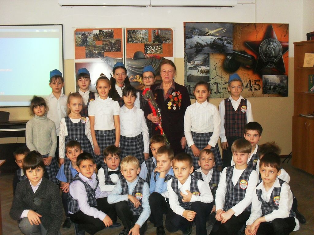 На уроке присутствовала бывшая узница концетрационного лагеря Косыгина Фаина Михайловна. Она рассказала о трудностях, пережитых жителями Ленинграда в дни блокады, о том, что город воплощал непобедимый дух народа России.