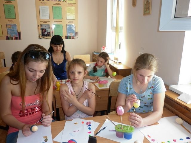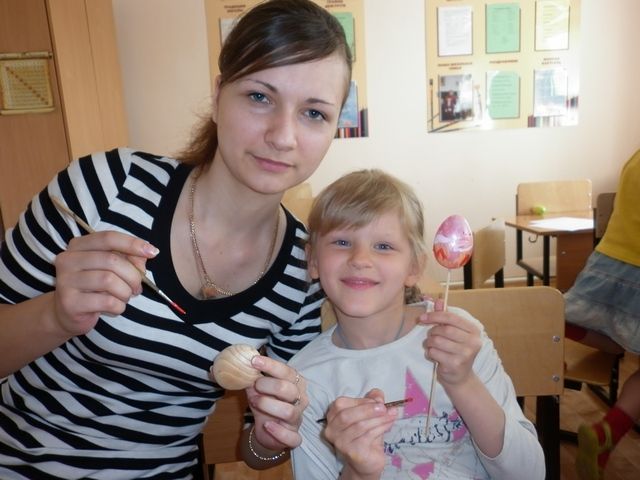 В продолжение светлого праздника православной Пасхи воспитанники детского дома вместе со студентами расписали пасхальные яйца. Эскизы своих творений ребята придумывали самостоятельно, маленькие цыплята, причудливые пейзажи и даже автомобиль умудрились изобразить маленькие художники на деревянных яйцах. Каждый ребенок оставил себе на память красивый сувенир, изготовленный собственными руками, обещая хранить его до следующего Святого Воскресенья.
