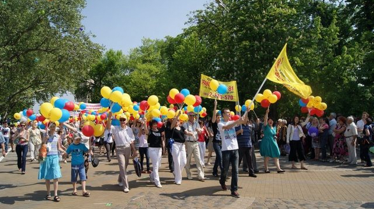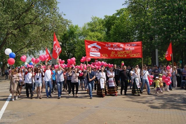 В праздничной колонне плечом к плечу шли трудовые коллективы предприятий, организаций, учреждений и общественных объединений.