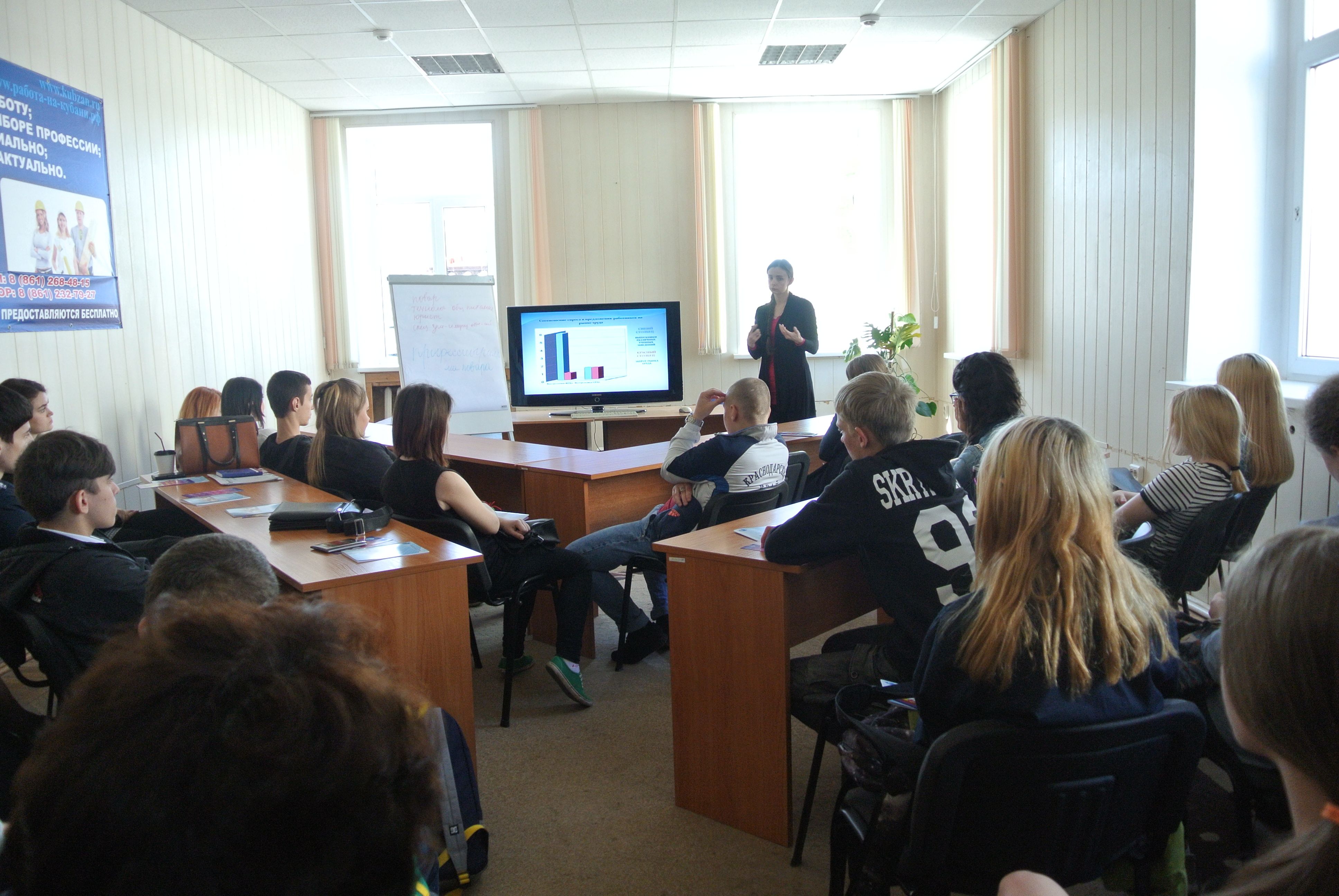 Сотрудники центра занятости населения города Краснодара выступили с информацией о региональном рынке труда, о востребованных и перспективных профессиях, о деятельности службы занятости населения, провели консультирование по вопросам трудоустройства на временную и постоянную работу.