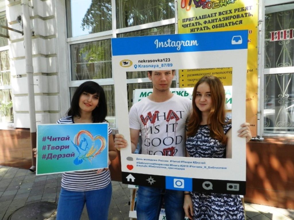 Все желающие фотографировались в инстарамке, принимали участие в викторине, разгадывали ребусы. Самые активные участники придумали девиз для молодых людей, используя слова любимого персонажа из книги или высказывание из литературного произведения.