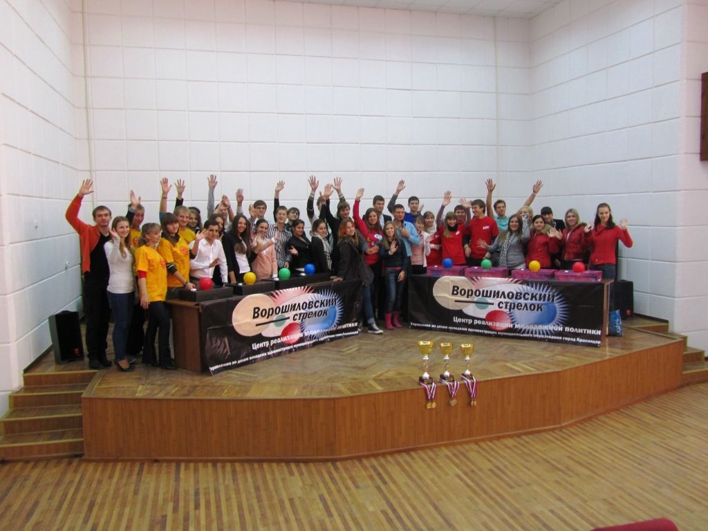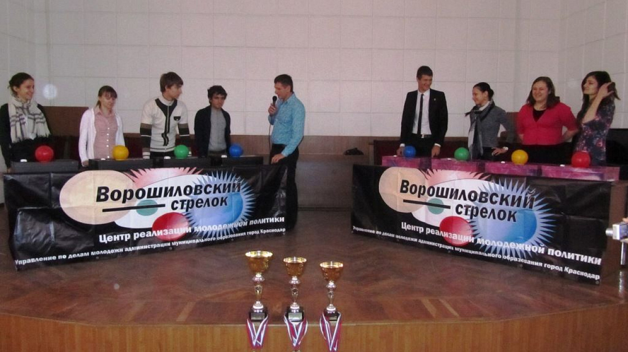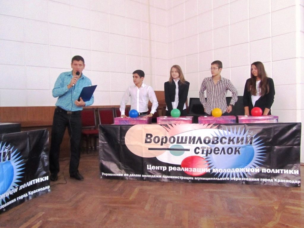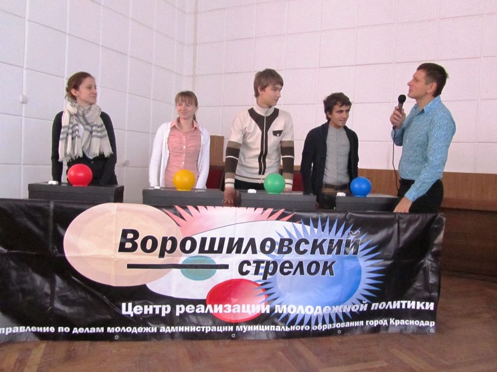 30 октября 201129 октября 2011 года в актовом зале администрации Западного внутригородского округа состоялся осенний турнир по игре «Интеллектуальное шоу «Ворошиловский стрелок». В игре приняли участие 10 команд, а это — старшеклассники общеобразовательных учреждений округа, средних и высших учебных заведений, а также команда молодежного Совета при главе администрации Западного округа и ВОО «Молодая Гвардия Краснодара».