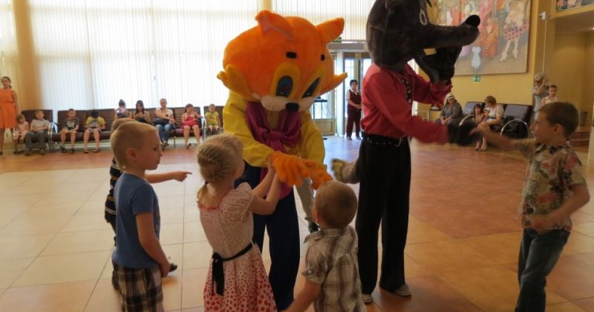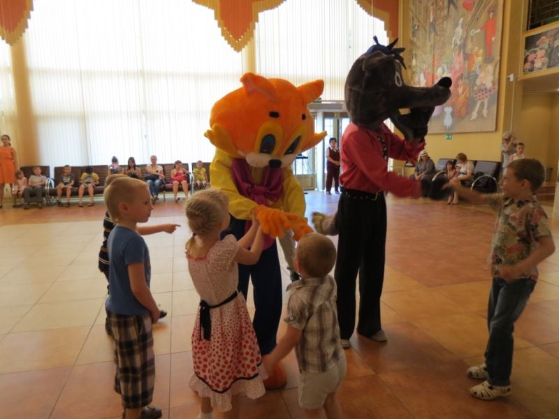 Перед спектаклем члены Молодёжного совета при главе администрации Западного округа развлекали детей в качестве аниматоров в ростовых куклах любимых сказочных персонажей.