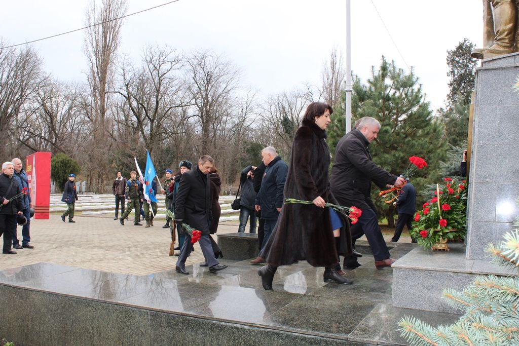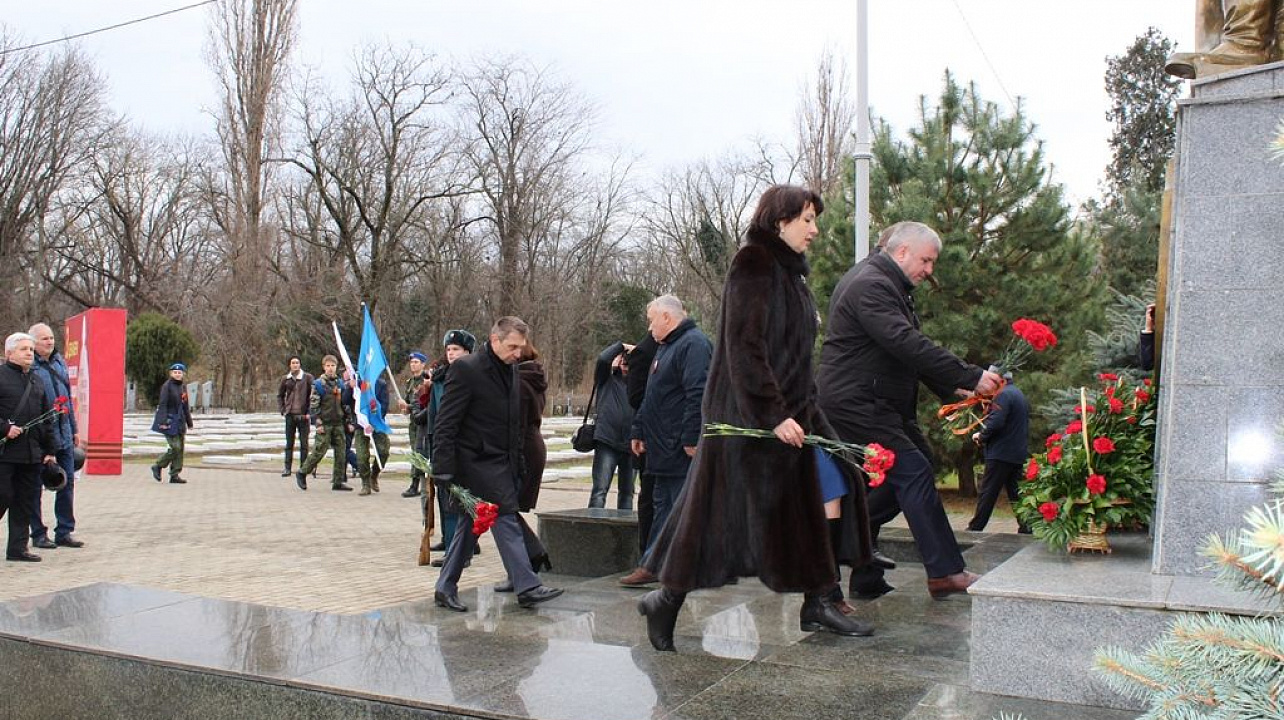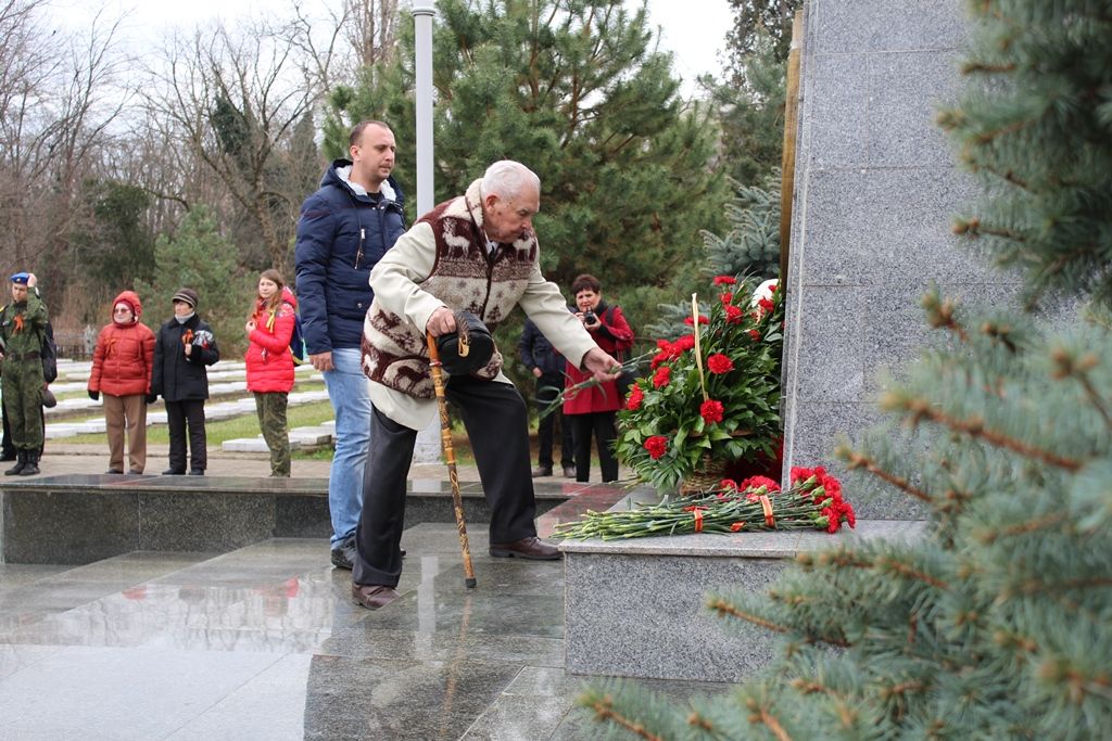 Память о подвиге героев прошлого почтили минутой молчания. После чего участники церемонии возложили цветы к мемориалу Героям СССР Братьям Игнатовым, а затем прошли к памятнику воинам, павшим при освобождении Краснодара.