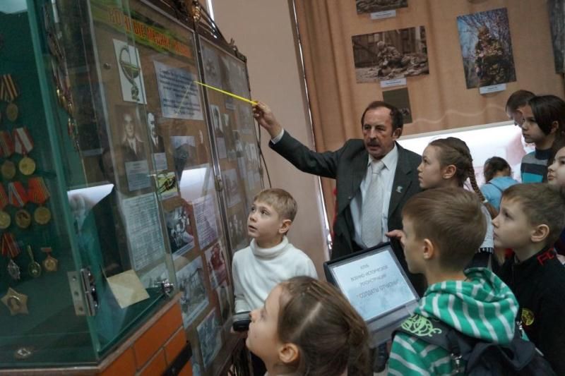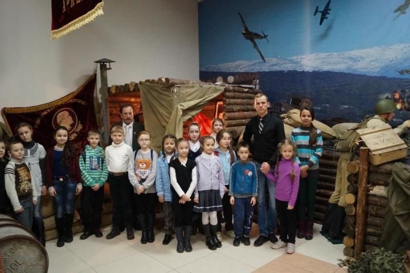 В музее представлено оружие, награды и медали, предметы личного пользования, документы и другие вещи времен войны, принадлежавшие советским солдатам. Ребятам удалось подержать в руках котелки, ложки и фляжки, подписанные советскими бойцами.