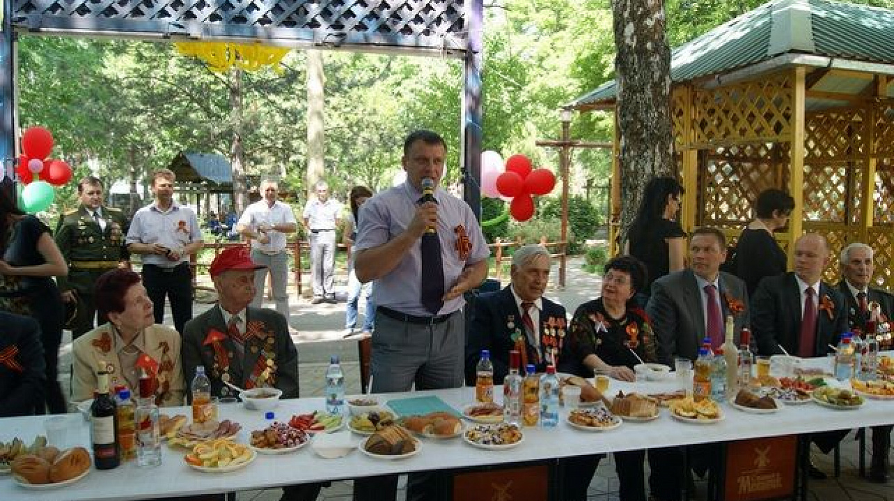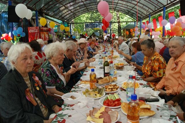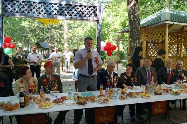 На праздник были приглашены 200 ветеранов, проживающие на территории Западного внутригородского округа, депутаты Законодательного собрания Краснодарского края, городской Думы Краснодара. После традиционного возложения цветов к Стеле Героев Кубани и минуты молчания в память погибших в годы войны почетные гости проследовали в кафе «Атмосфера». Здесь их ожидал теплый прием, ставшая уже традиционной, военно-полевая кухня, фронтовые 100 грамм и любимые мелодии военных лет.