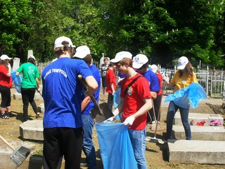 В рамках детского общественного движения «Новые тимуровцы» учащиеся школы № 5 провели акцию по уборке Всесвятского кладбища.