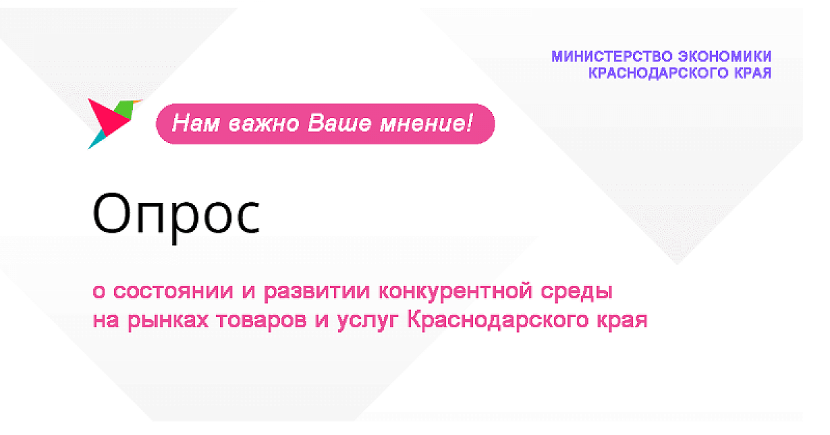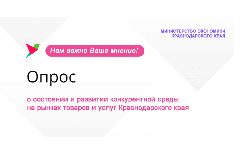 3 августа 2020В рамках внедрения Стандарта развития конкуренции в субъектах Российской Федерации министерство экономики Краснодарского края проводит ежегодный мониторинг (опрос) мнения потребителей и предпринимателей о состоянии и развитии конкурентной среды на товарных рынках Краснодарского края.