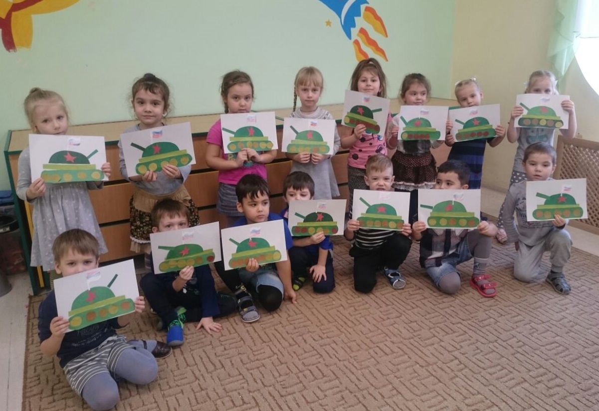 Ребята не только назвали тех солдат, с которыми познакомились во время виртуальной экскурсии, но и вспомнили о своих папах, дедушках и братьях. По окончанию экскурсии ребята изготовили аппликацию «Танк».