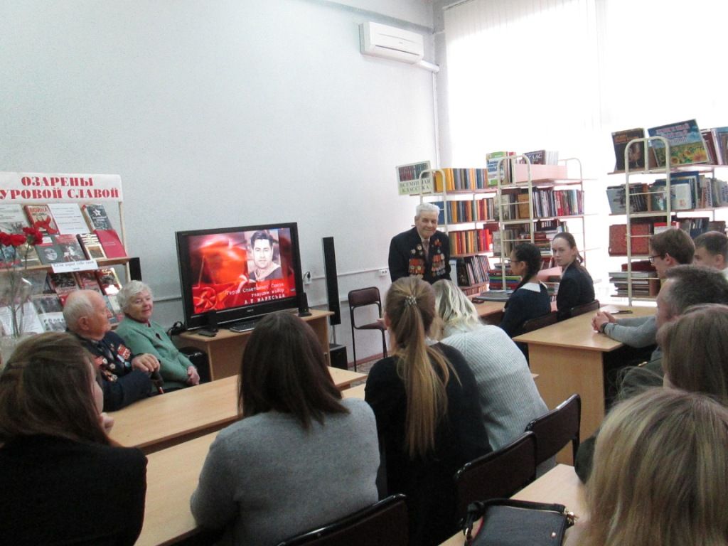 Ведущая обратила внимание гостей мероприятия на литературу, представленную на выставке «Озарены суровой славой»: историческую, художественную, периодические издания, альбомы фотодокументов.