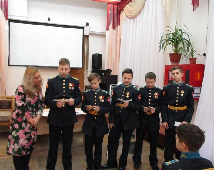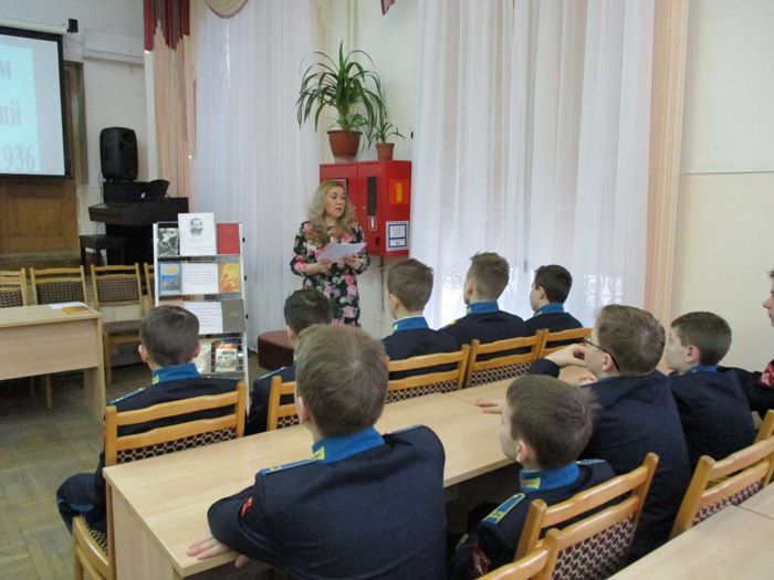 Ведущая отметила, что с чудесным творением народной поэзии Горького познакомила бабушка. Много читая, он поражал окружающих своими энциклопедическими знаниями. Библиотекарь подчеркнула, что Горький был организатором и первым руководителем Союза советских писателей. Кадеты узнали о его самых известных произведениях («Детство», «В людях», «Мои университеты», «Макар Чудра», «Бывшие люди», «Сказки об Италии», «Заметки из дневника», «Мещане», «На дне», «Дети солнца»).