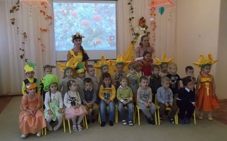 Все дети были в красивых костюмах, с разноцветными, осенними листиками в руках.