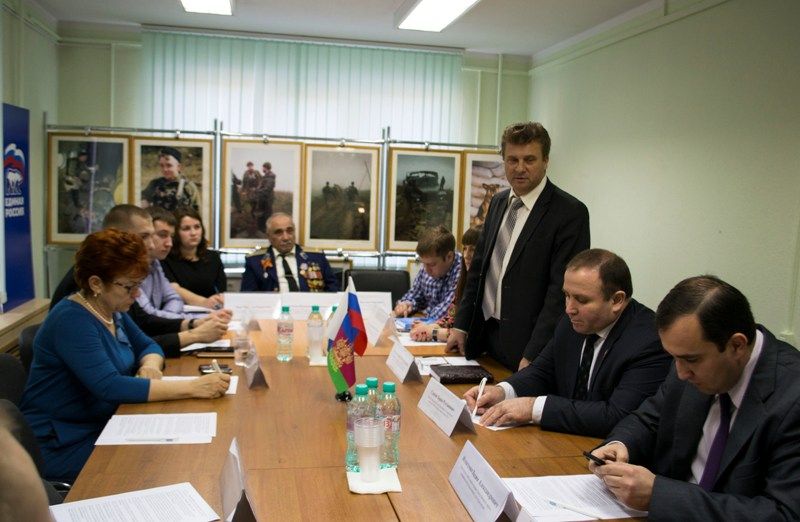 6 февраля 2015Делегация Западного округа города Краснодара в составе заместителя главы администрации Валерия Зубенко, председателя Западного окружного Совета ветеранов (пенсионеров, инвалидов) войны, труда, вооруженных сил и правоохранительных органов Геннадия Ивановича Дуброва, специалиста по работе с молодёжью Екатерины Коваль и председателя молодёжного Совета Западного округа Елены Березовской приняла участие круглом столе «Великая Победа, добытая единством», посвящённом празднованию 70-летия Победы в Великой Отечественной Войне, проводимом в общественной приёмной депутата Законодательного Собрания Краснодарского края Григория Пенжояна .