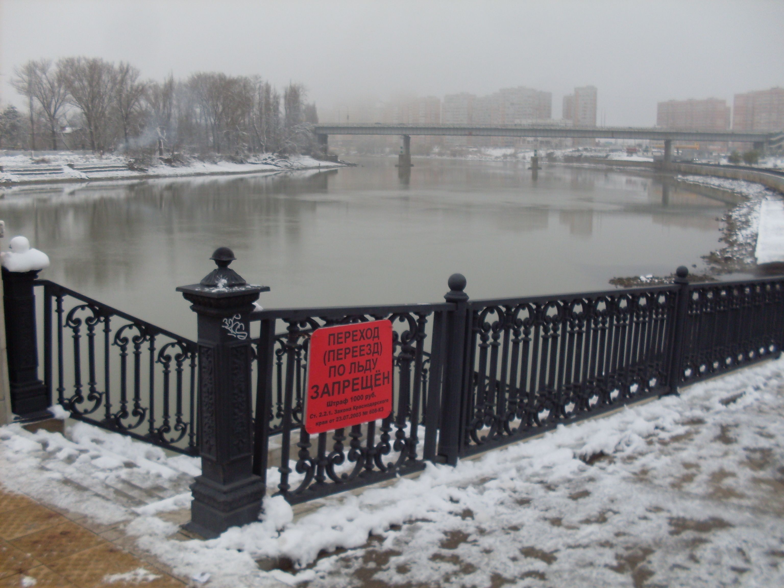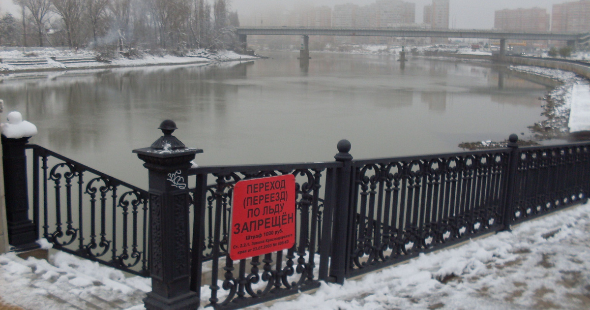 В связи с приближающими Новогодними и Рождественскими праздниками, а так же ожидаемым понижением температуры по прогнозам Краснодарского гидрометеоцентра, на территории Западного округа в предполагаемых опасных местах установлены запрещающие знаки «Переход (переезд) по льду запрещен».