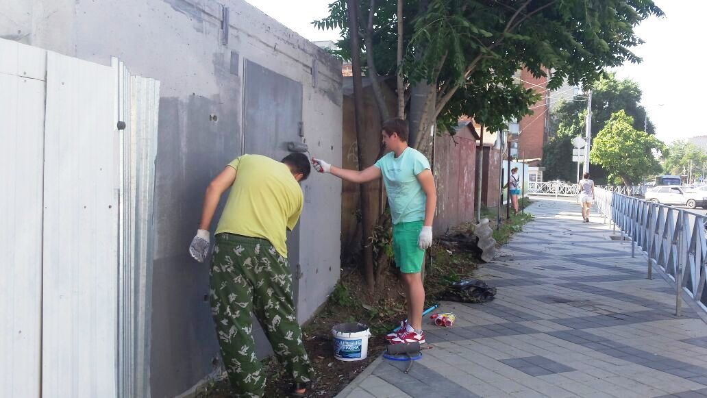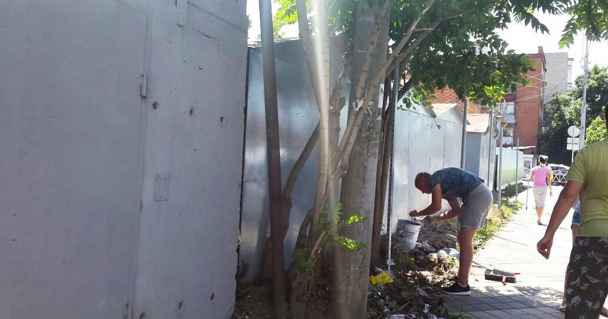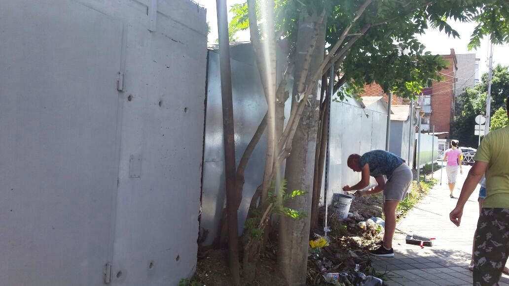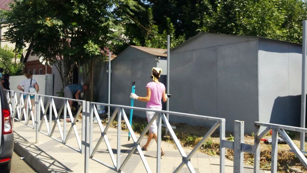 Выполнялись работы по покраске фасадов металлических гаражей, уборке мусора между гаражами, ликвидации поросли по ул. Гаврилова в районе перекрёстка улиц Красных Партизан и Аэродромная.