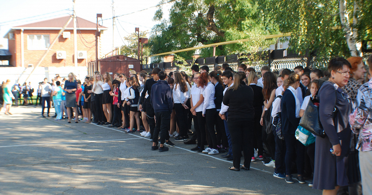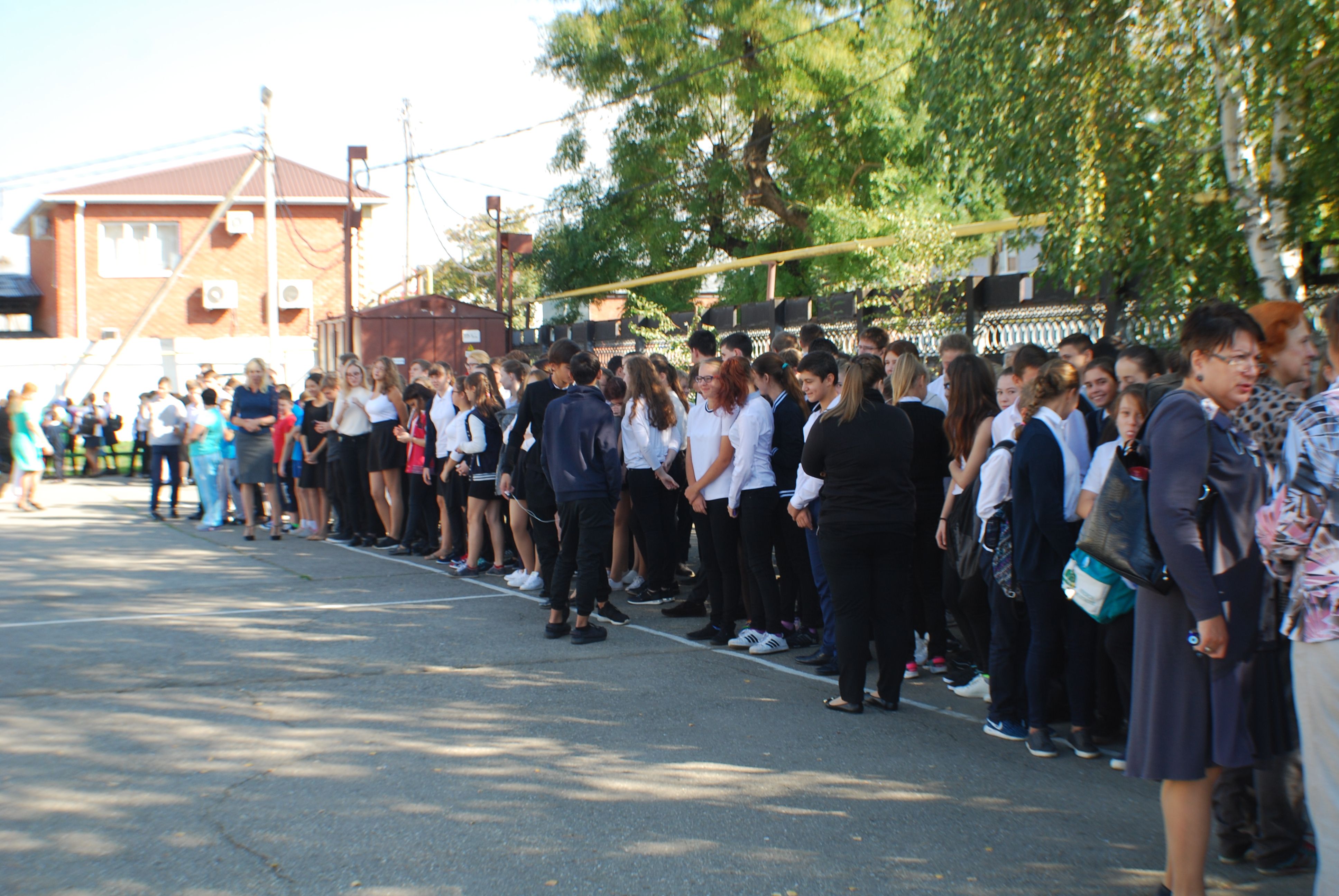 Сбор учеников школы № 39 и учителей был — на спортивной площадке.