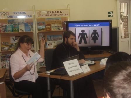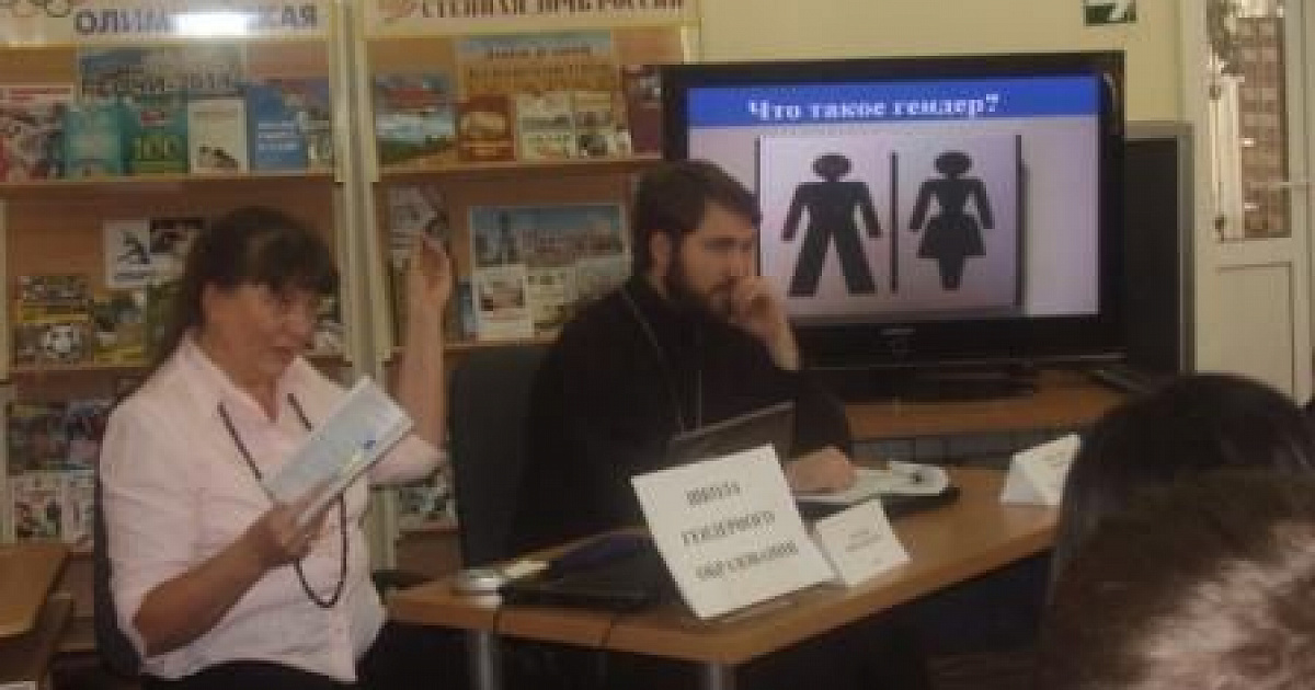 Мероприятие сопровождалось просмотром видеослайдов «Что такое «гендер?» и фрагмента из мультфильма «Алеша Попович и Тугарин Змей», демонстрирующих типичное распределение гендерных ролей в обществе.