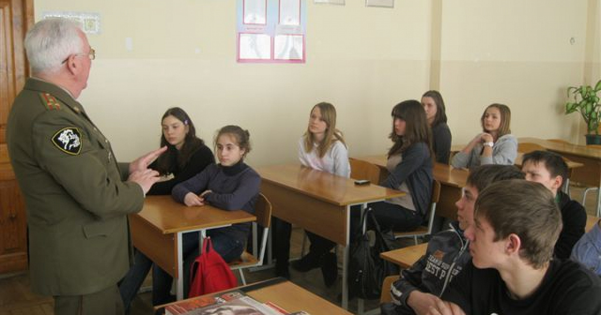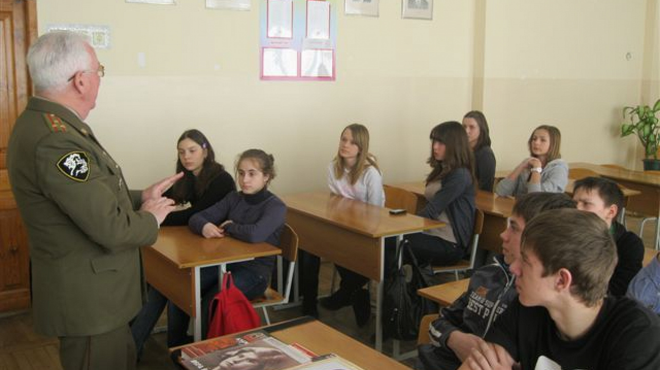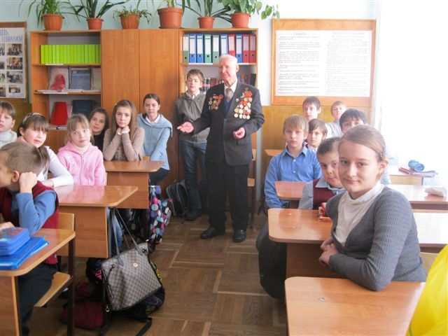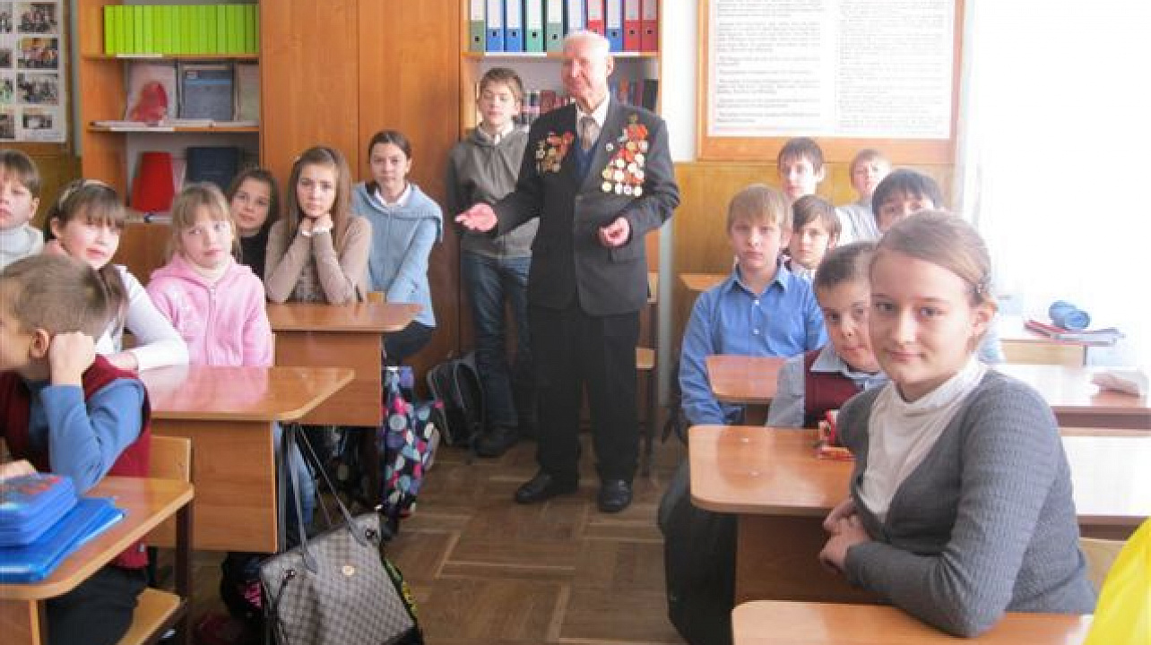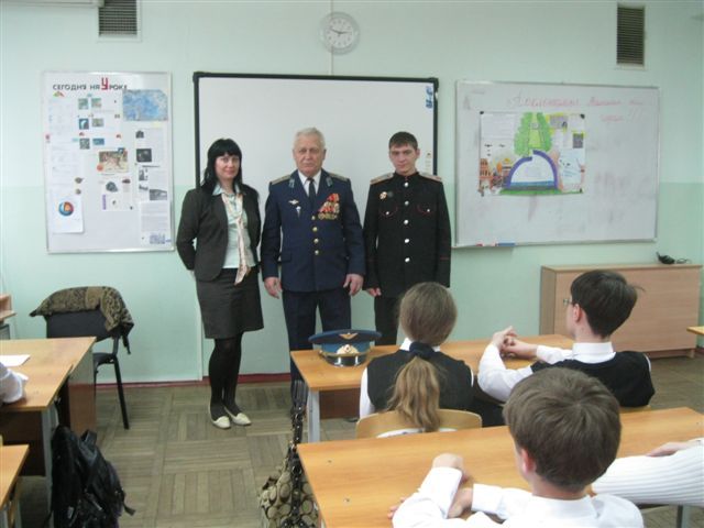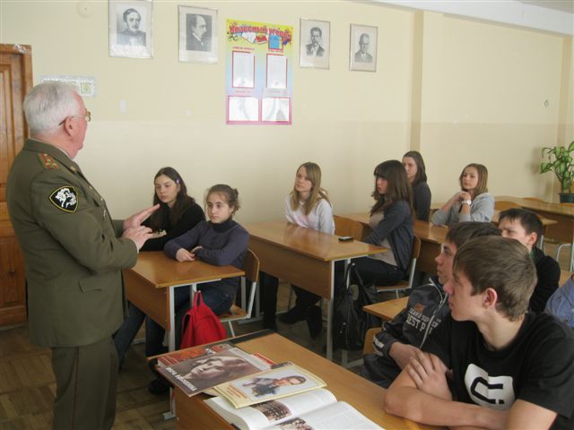 С ребятами 8 «А», 6 «А» и 2 «А» классов встречался ветеран вооружённых сил, полковник, заместитель председателя ветеранской организации «Южная» Цокур Владимир Степанович. Он рассказал учащимся о Сталинградской битве.