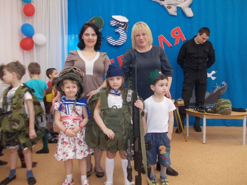 В доступной форме военные рассказали малышам о безопасности, о защите Родины и мира на Земле. Несмотря на чисто мужскую направленность мероприятия, скучно не было никому! Девочки наперегонки с мальчиками спешили нанести „боевую раскраску“, обменивались оружием и наряжались в военную амуницию.