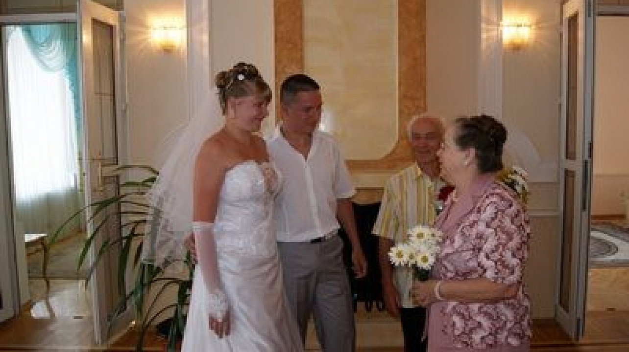 А при выходе из ЗАГСа супруги встретили молодоженов, решивших в этот праздничный день доверить друг другу свои судьбы, юбиляры от всего сердца поздравили их с бракосочетанием и дали напутственные пожелания на долгую и счастливую совместную жизнь.