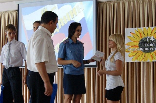 Приятным сюрпризом программы стал специально приглашенный гость - глава администрации Западного округа Николай Лебедев. Именно ему предстала возможность вместе Татьяной Стрельцовой, заместителем начальником отдела УФМС России по Краснодарскому краю в Западном округе города Краснодара, вручить главный в жизни документ одинадцати счастливчикам. Хочется отметить, что такие моменты являются волнительными не только для мальчишек и девчонок, но и для родителей, пришедших поддержать их в столь знаменательный час.