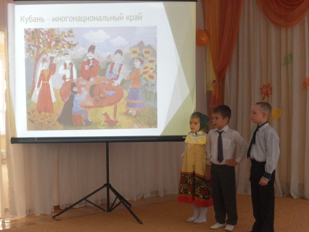 Ребята, представляющие разные этносы, проживающие в Краснодарском крае, рассказали о традициях и обычаях этих этносов.