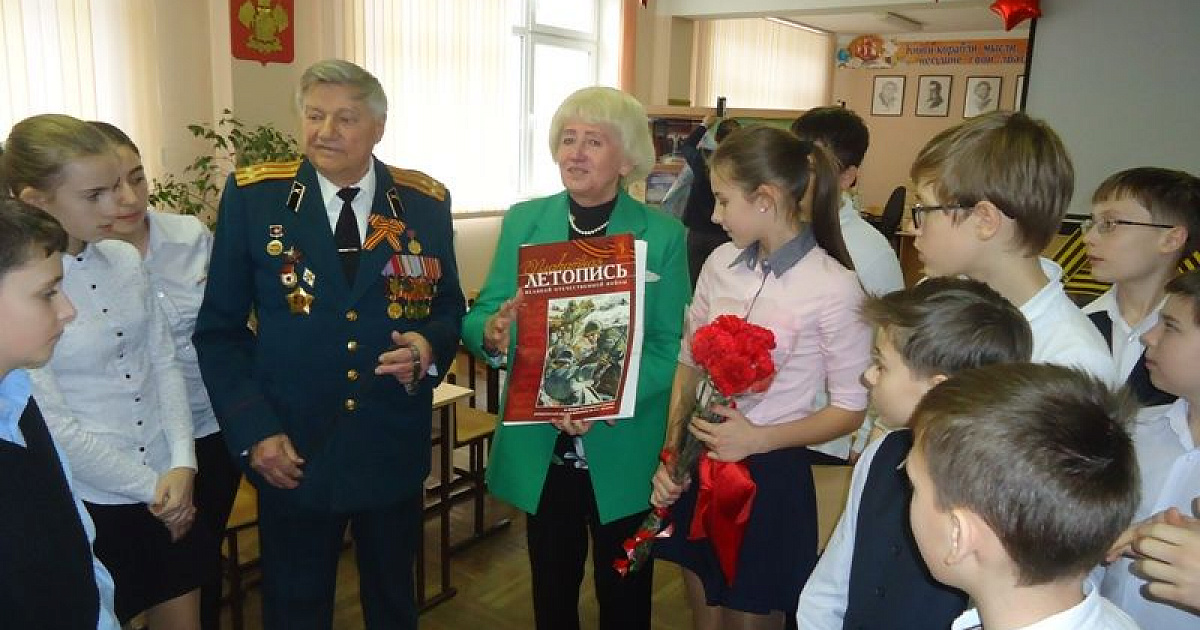 На уроке мужества в школе № 101 побывал Георгий Поликарпович Гагай, участник битвы под Сталинградом. Ребята оформили школьную библиотеку страницами книг и газет военных лет, памятными звёздами и орденами Великой Отечественной войны.