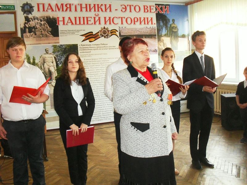 Дмитрий Шлыков участник освобождения города Краснодара и Кубани, ветеран Великой Отечественной войны отметил: «Такие встречи очень нужны. Они нужны и для нас, и для тех, кто с нами встречается. Это эстафета памяти, она должна передаваться от одного поколения к другому».