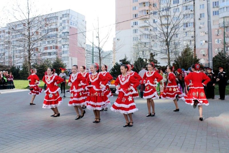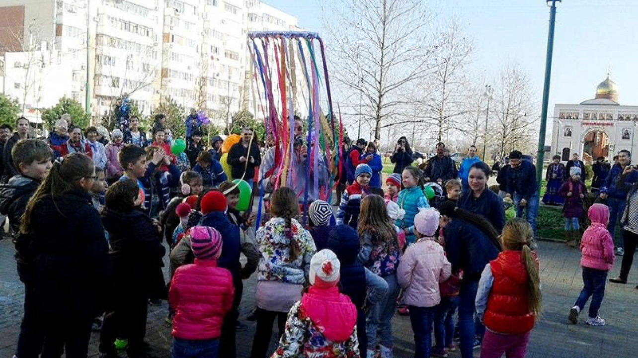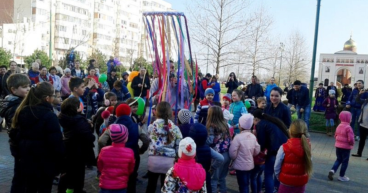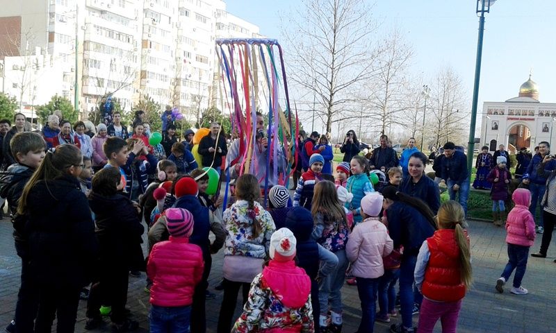 На Бульваре Платановом у фонтана развернулось настоящее народное гуляние с плясками, песнями, играми для взрослых и детворы.