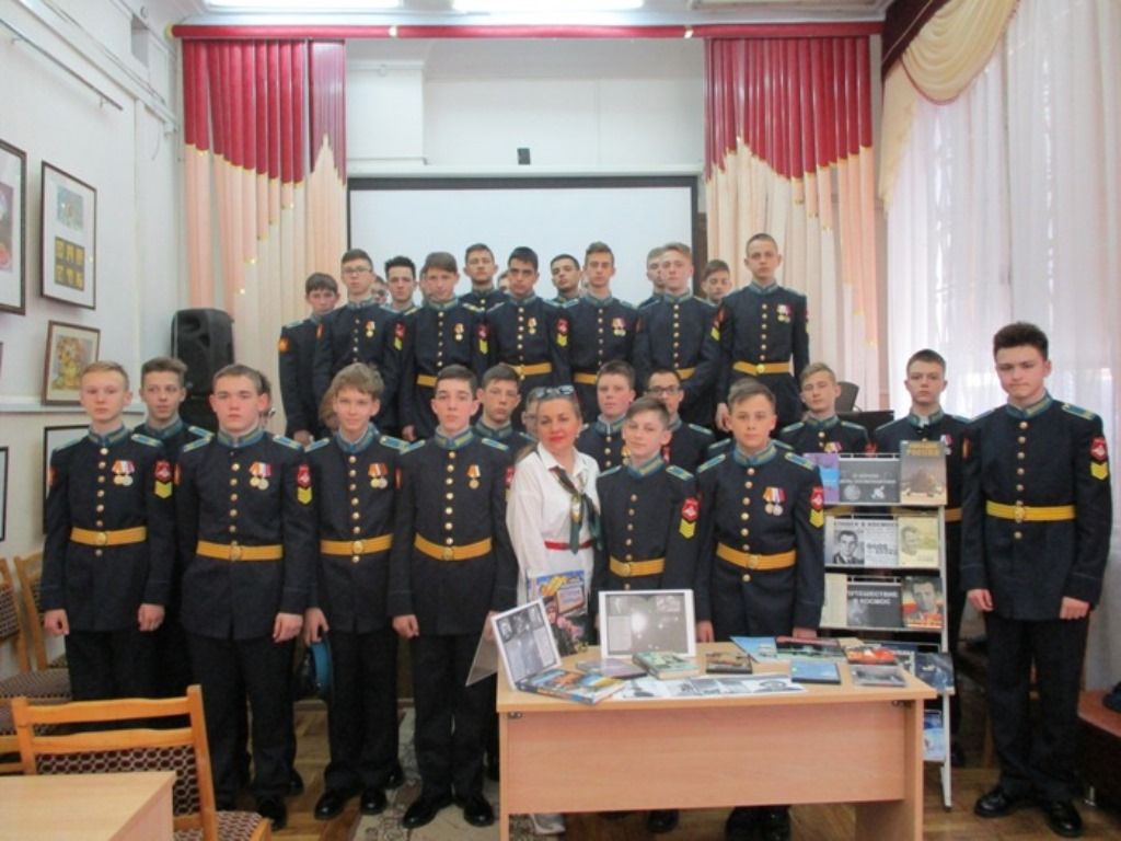 9 апреля 2019На мероприятие были приглашены курсанты Краснодарского президентского кадетского училища. Ведущая подготовила книжную выставку «Истории ныне подарен всего человечества взлет…», на которой были представлены книги, журналы и аудиовизуальные материалы по теме. Экскурс начался с видеопрезентации «Космос манит и зовет». Ребятам рассказали, что в этом году исполняется 58 лет со дня первого полета человека в космос