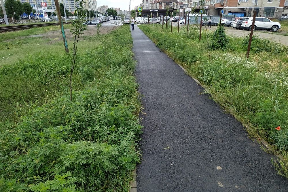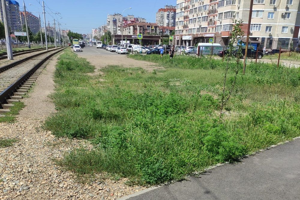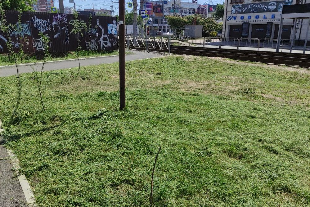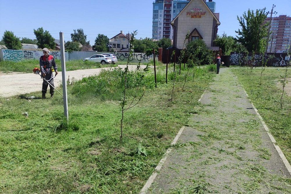 На этой неделе работы по покосу вредоносной травы проведены у тротуарной дорожки вдоль трамвайных путей от улицы Харьковской до дома № 37 по проспекту Чекистов подрядной организацией администрации округа.