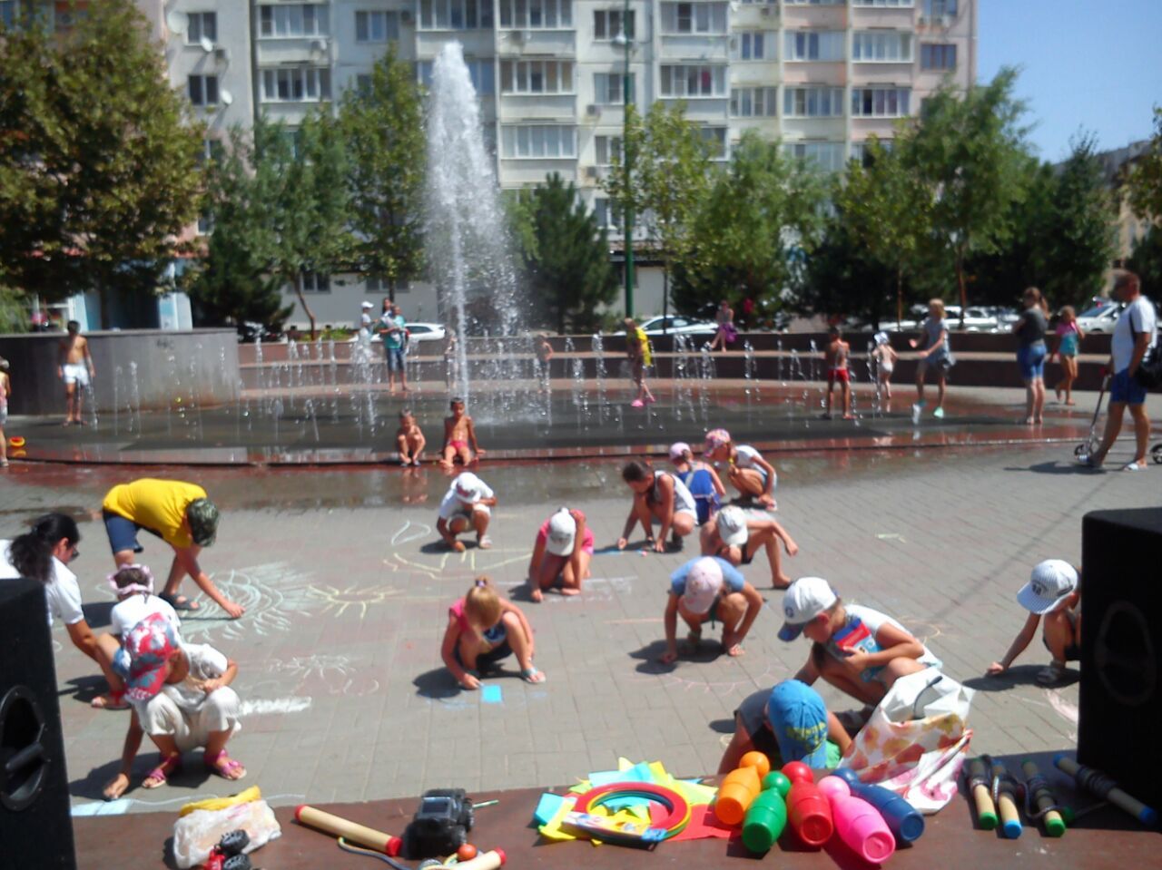 Завершилась игровая программа, конкурсом рисунков на асфальте «Радужный бульвар». Дети вместе с родителями нарисовали, как они проводят это прекрасное жаркое лето.