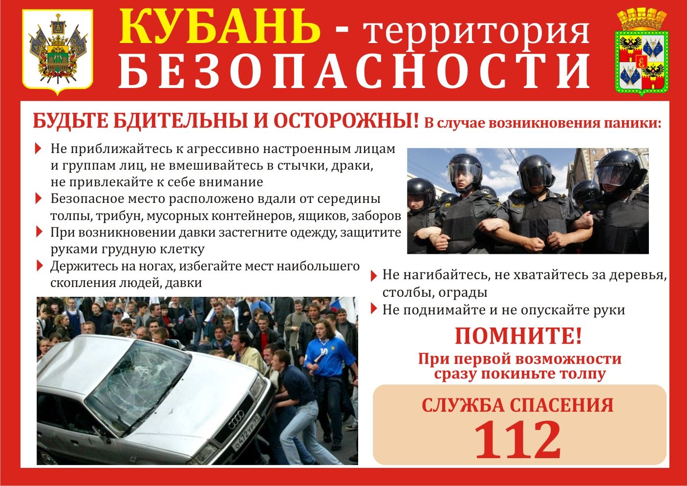— не приближаться к агрессивно настроенным лицам и группам лиц, не вмешиваться в стычки, драки, не прилетать к себе внимания;