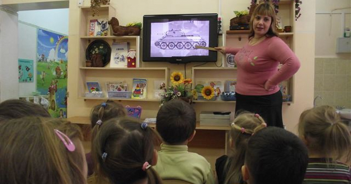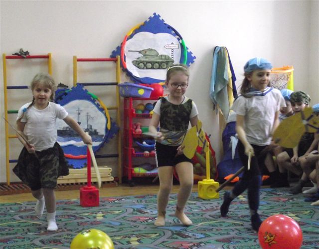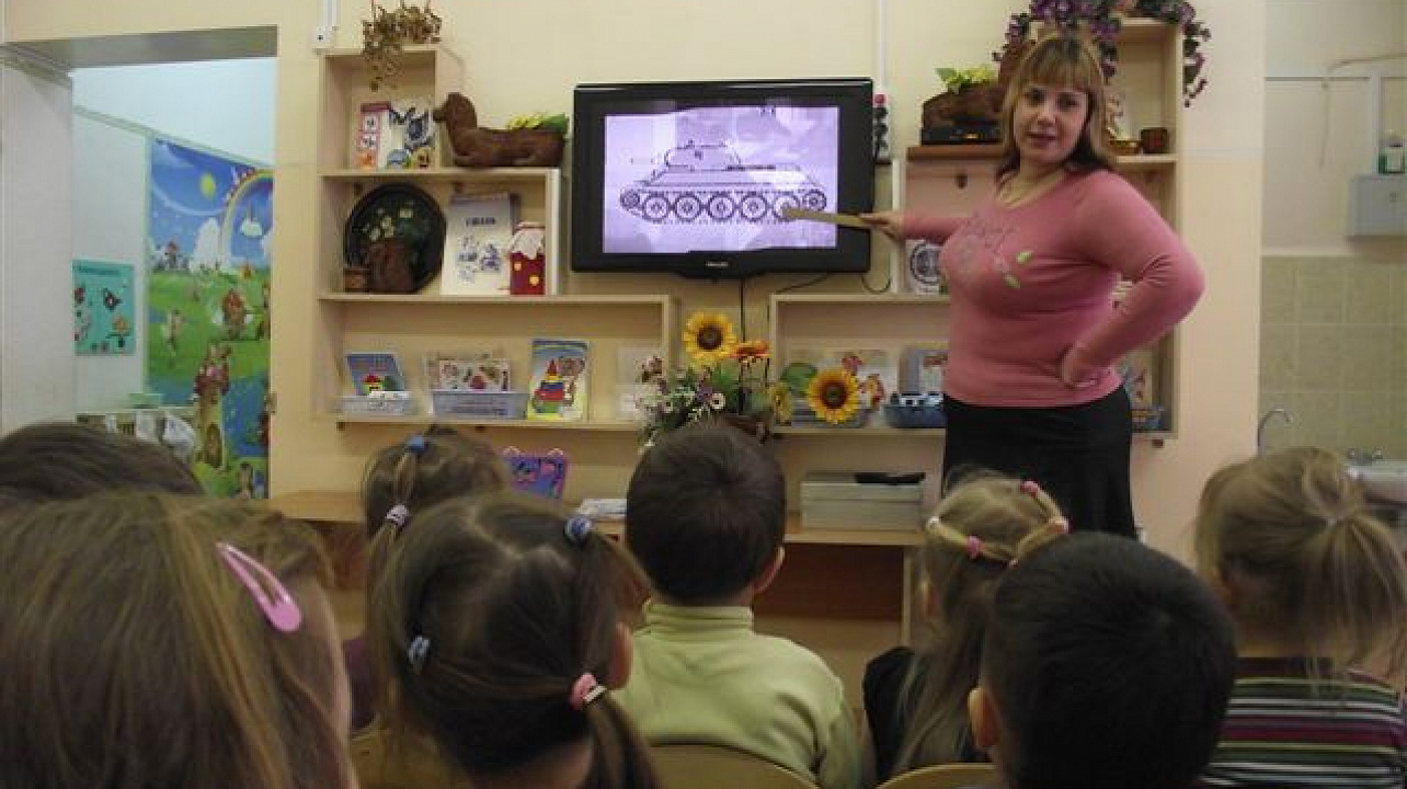 Воспитатели Мирзоева О.Г., Козлова Т.С., Денисова Е.А. творчески подошли к проведению занятий. Дети были в восторге от просмотра фильмов о военной технике: «Танки Победы», «Наши защитники», эстафет и игр «Кубанские наездницы», «Храбрые танкисты», проведённых в спортивном зале с участием курсантов военных училищ города Краснодара. Дети отразили свои впечатления в рисунках и аппликациях.