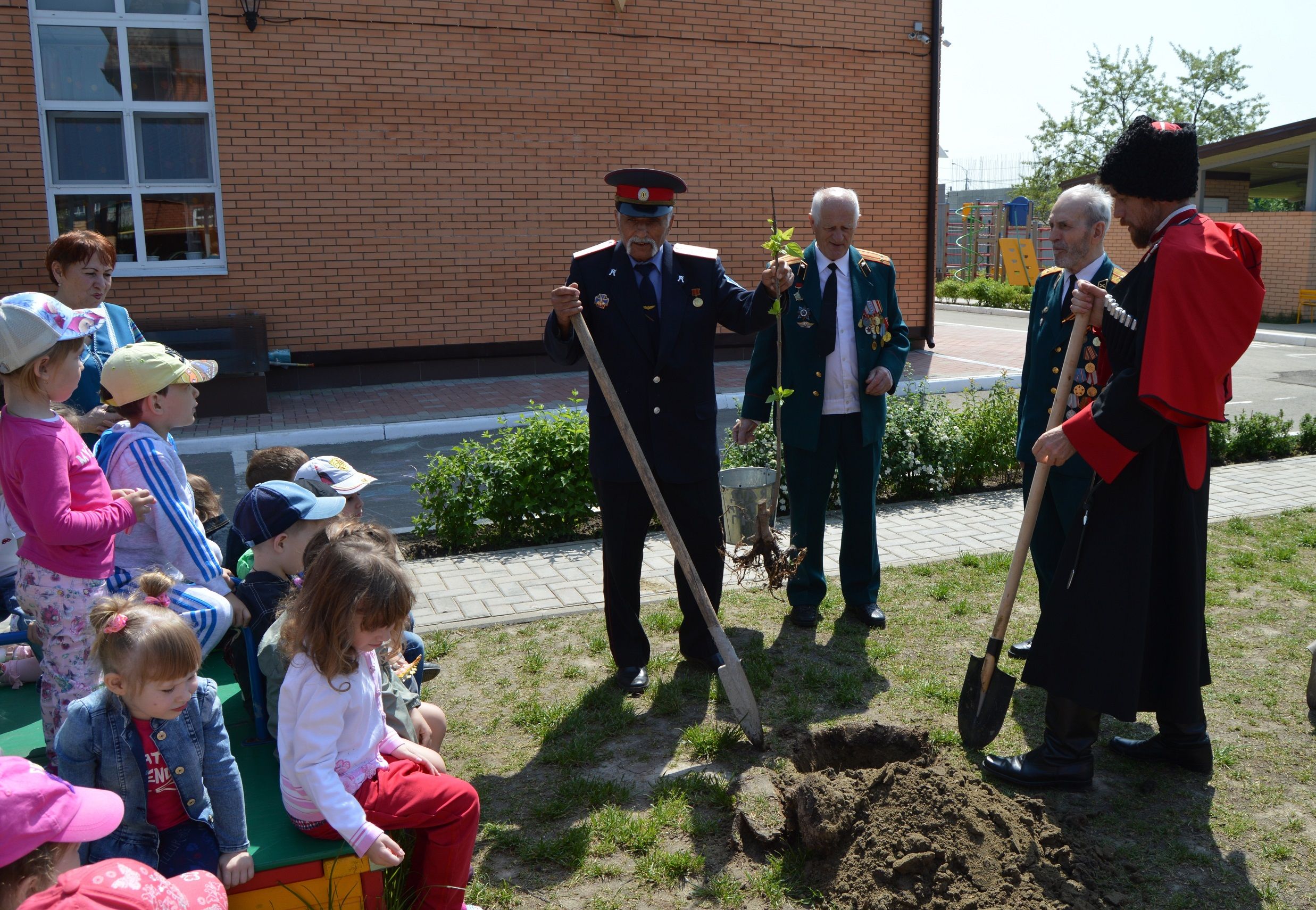 После праздника и чайной паузы ветераны посадили дерево «Катальпа» на территории детского сада в память о 72-ой годовщине победы в Великой Отечественной Войне.