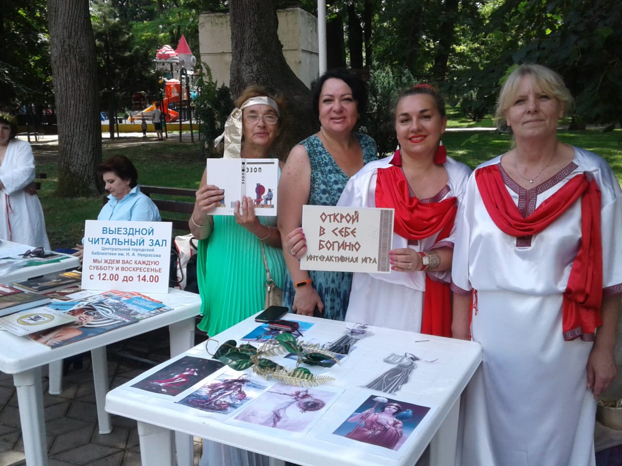 Так, сотрудники библиотеки провели интерактивную игру «Почувствуй себя богиней», викторину «Путешествие в Античность». Для мальчишек и девчонок был проведен мастер-класс «Традиции античности», в ходе которого ребята познакомились с изображениями бытовых предметов эпохи Боспорского царства. Юные читатели проявили фантазию, раскрашивая рисунки.